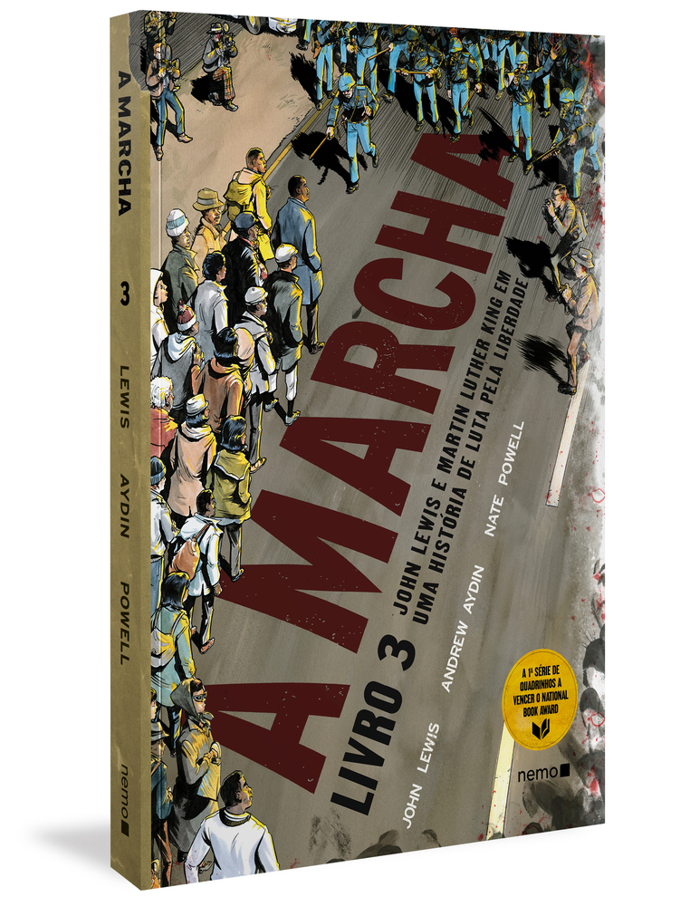 Vencedor do prêmio Eisner de Melhor História em quadrinhos baseada em fatos reais. Primeiro quadrinho na história a vencer o prestigiado National Book Award A impressionante conclusão da premiada trilogia A Marcha . O agora saudoso congressista John Lewis, um ícone norte-americano e uma das principais figuras do movimento pela igualdade racial, junta-se ao corroteirista Andrew Aydin e ao artista Nate Powell para trazer à nova geração, de forma cristalina, lições da história que são urgentemente relevantes para o mundo de hoje. Em 1963, o Movimento pelos Direitos Civis penetra profundamente a consciência dos Estados Unidos, e, como presidente do Comitê Coordenador Estudantil Não Violento (SNCC), John Lewis está guiando a ponta da lança. Por meio de ação direta implacável, o SNCC continua a forçar a nação a confrontar sua injustiça flagrante, mas a cada passo à frente, o perigo fica mais intenso: as leis “Jim Crow” contra-atacam por meio de manobras legais, intimidação, violência e morte. A única esperança de uma mudança duradoura é dar voz aos milhões de americanos silenciados pela proibição ao voto. Para realizar sua revolução não violenta, Lewis e um exército de jovens ativistas lançam uma série de campanhas inovadoras, incluindo o Freedom Vote, o Mississippi Freedom Summer e uma batalha generalizada pela alma do Partido Democrata, travada ao vivo em rede nacional de televisão. Com essas novas lutas, vêm novos aliados, novos oponentes e um novo presidente imprevisível, que pode ser as duas coisas ao mesmo tempo. Mas as fissuras internas do movimento estão se aprofundando... mesmo enquanto John Lewis, então com 25 anos, se prepara para arriscar tudo em um confronto histórico bem acima do Rio Alabama, em uma cidade chamada Selma. ____________________________________________________________ “Os atos corajosos de desobediência civil conferem a A Marcha seu valor educativo, assim como os desenhos de Powell conferem à narrativa cristalina de Lewis o poder de comover.” The New York Times “Talvez não haja um livro moderno mais importante para ser armazenado nas bibliotecas escolares americanas do que A Marcha.” The Washington Post “Leitura essencial. A Marcha é uma conquista comovente e importante. A história de um verdadeiro super-herói americano.” USA Today “Uma crônica fascinante da extraordinária história de vida de John Lewis. Ilustra de forma poderosa quanta perseverança é necessária para alcançar mudanças sociais fundamentais.” O, The Oprah Magazine “A Marcha oferece um retrato comovente de uma figura icônica, que entretém na mesma medida em que instrui, e que merece ser colocada ao lado de outras memórias gráficas históricas como Persépolis e Maus.” Entertainment Weekly “Os atos corajosos de desobediência civil conferem a A Marcha seu valor educativo, assim como os desenhos de Powell conferem à narrativa cristalina de Lewis o poder de comover.” The New York Times “Talvez não haja um livro moderno mais importante para ser armazenado nas bibliotecas escolares americanas do que A Marcha.” The Washington Post “Leitura essencial. A Marcha é uma conquista comovente e importante. A história de um verdadeiro super-herói americano.” USA Today “Uma crônica fascinante da extraordinária história de vida de John Lewis. Ilustra de forma poderosa quanta perseverança é necessária para alcançar mudanças sociais fundamentais.” O, The Oprah Magazine “A Marcha oferece um retrato comovente de uma figura icônica, que entretém na mesma medida em que instrui, e que merece ser colocada ao lado de outras memórias gráficas históricas como Persépolis e Maus.” Entertainment Weekly