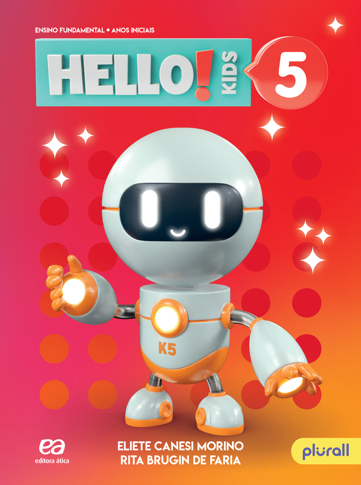 A nova edição do HELLO, KIDS! desenvolve as quatro habilidades oralidade, leitura, escrita e fala, além da diversidade cultural e habilidades socioemocionais. A abordagem e os temas são contemporâneos para incentivar a participação dos alunos com jogos, brincadeiras, atividades com abordagem CLIL e STEAM, projetos interdisciplinares e uma variedade de atividades digitais. O robô Kiddie5, convida os alunos a dizer chants para aprimorar a pronúncia. Acompanha um reader para o aluno ler e ouvir as histórias. Áudios disponíveis no Plurall ou no Spotify.